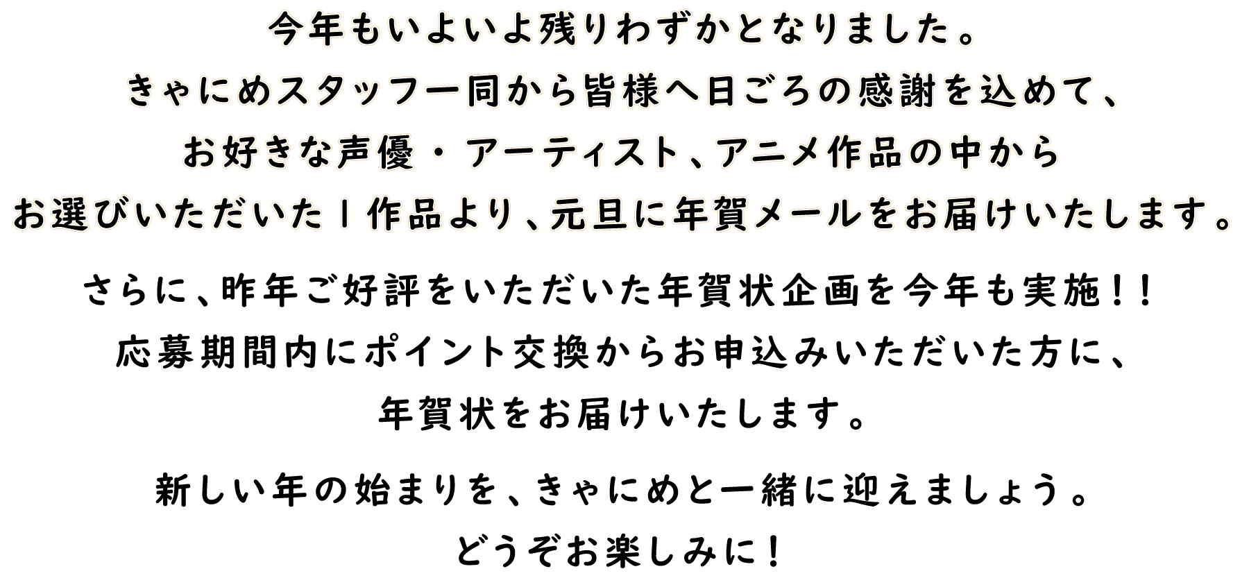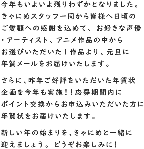 | 年賀メール配信 | 2026年1月1日(木)午前10時頃予定 |